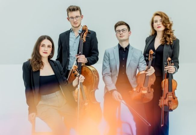 The Javus Quartet, based in Salzburg, is comprised of violinists Marie-Therese Schwöllinger and Alexandra Moser, violist Marvin Stark, and cellist Oscar Hagen. Formed in 2016, they draw artistic inspiration from leading figures in the international chamber music scene including Eberhard Feltz, Hatto Beyerle, Gerhard Schulz, Valentin Erben, Veronika Hagen, Rainer Schmidt, and Thomas Adès.
