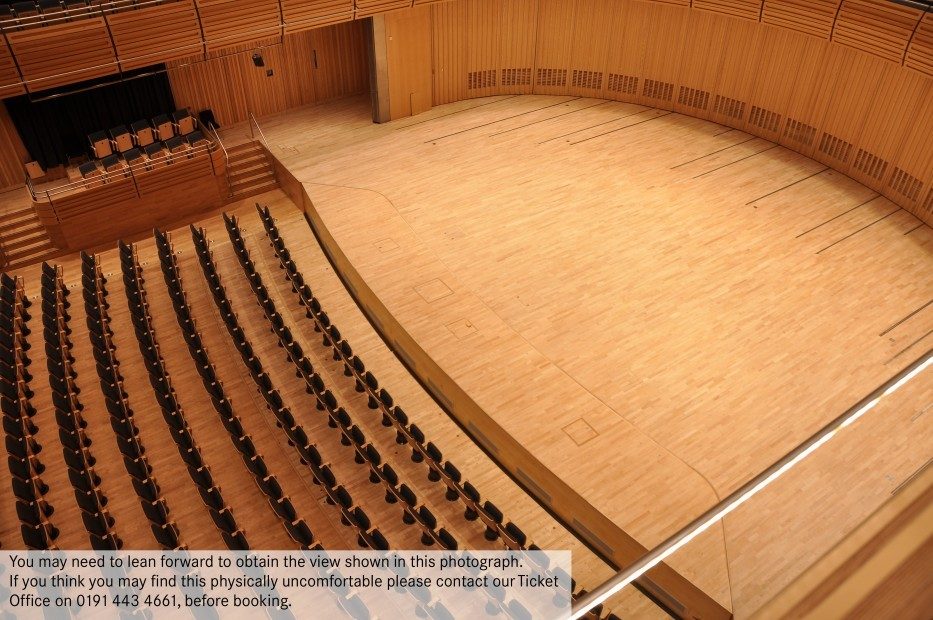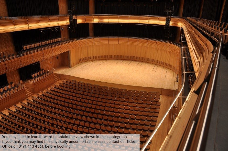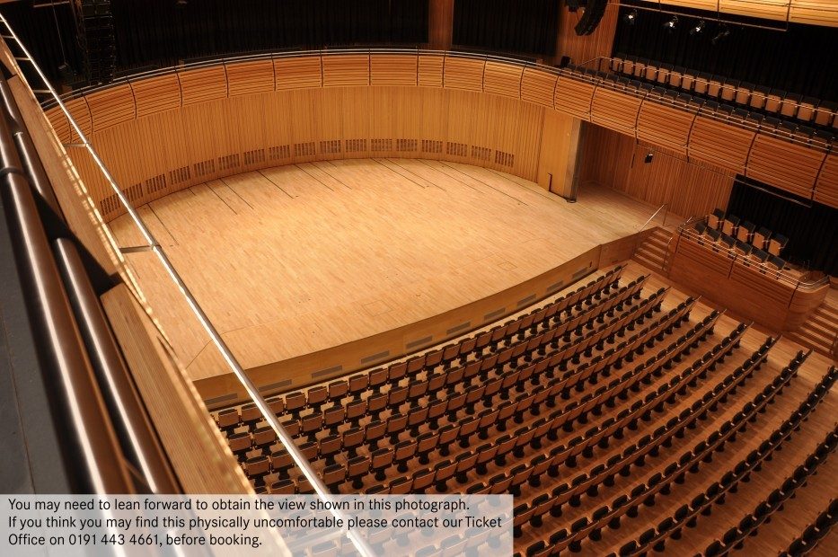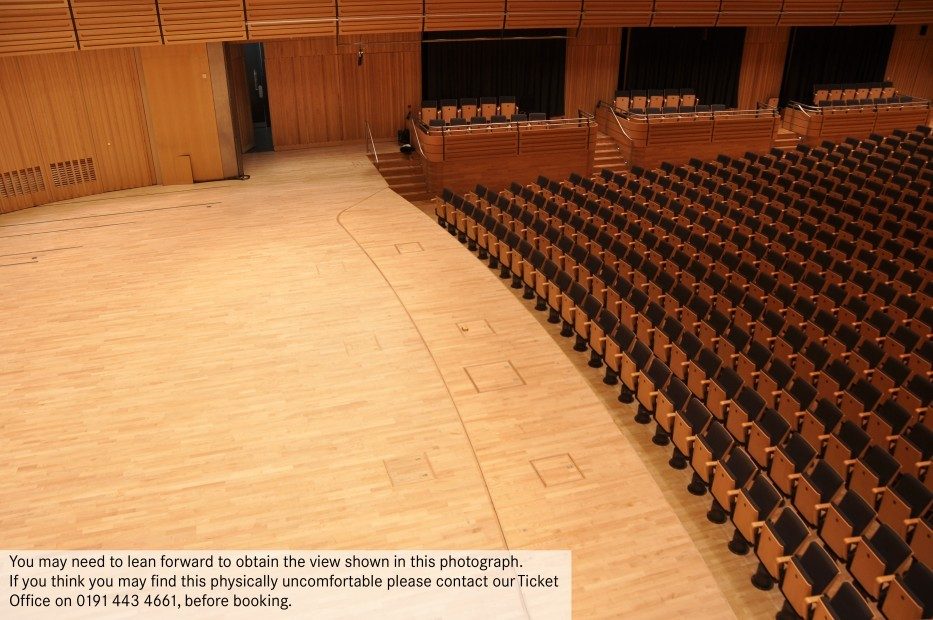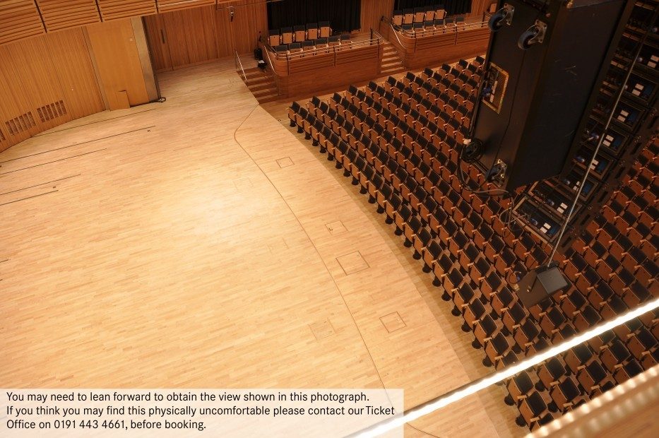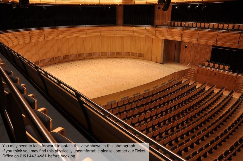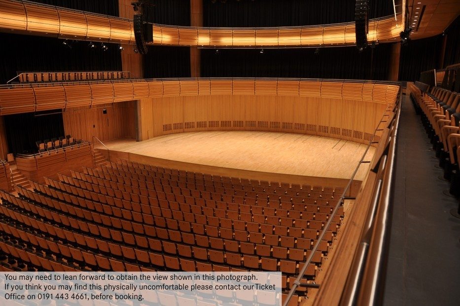 You may need to lean forward to obtain a full view of the stage from the sides of Level 3. If you think you may find this physically uncomfortable, please contact Box Office on 0191 443 4661 before booking.